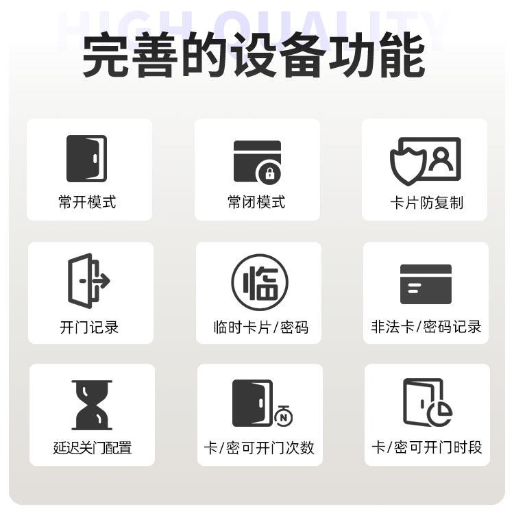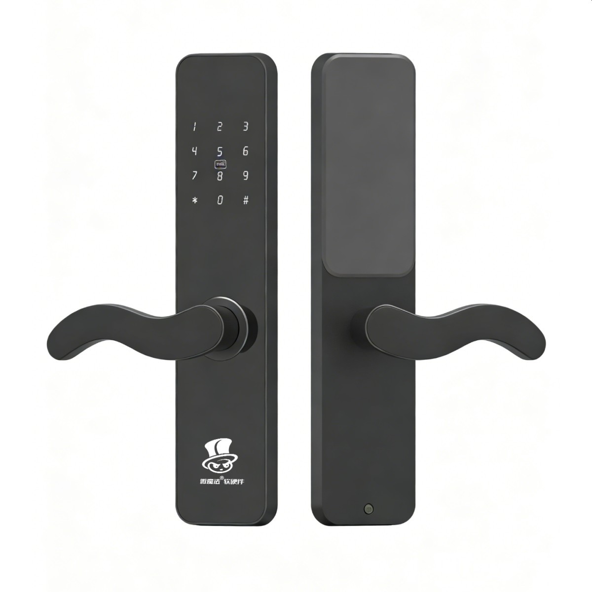 琼中这款智能门锁提供室内门锁和防盗门锁两种选择,其中室内门锁尺寸为 2806521mm,适配 5050 锁体;防盗门锁尺寸为 3657021mm,适配 6068 锁体,可满足不同场景的安装需求。它采用铝合金一体成型搭配钢化玻璃面板打造,兼具坚固耐用的品质与简洁美观的视觉效果。门锁支持蓝牙无线通讯,解锁方式丰富多样,密码、卡片、蓝牙、钥匙四种方式随心选择,满足不同使用习惯与应急需求。其工作温度范围为 - 20~70℃,能适应多数地区的气候条件,采用碱性电池供电,安装更换便捷,是兼具安全性与实用性的门锁选择。